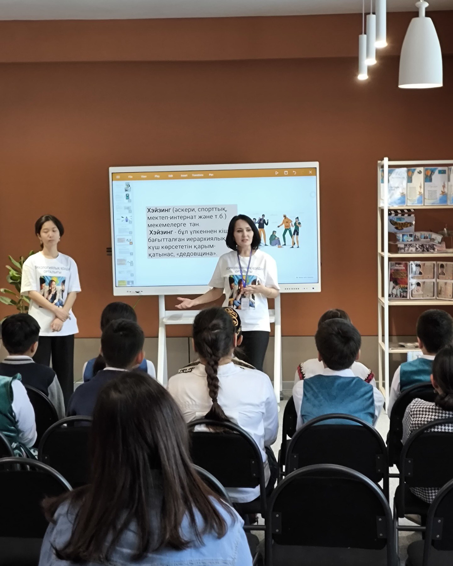 6 декабря психологи «Центра психологической поддержки» на базе средней школы № 103 организовали мастер-класс для педагогов-психологов района «Есиль» на тему «Борьба с кибербуллингом». В занятии приняли участие 45 учеников 6 классов и 9 педагогов-психологов.